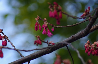 先日は赤実大島の開花をお知らせいたしましたが、本日は寒緋桜が開花しました!