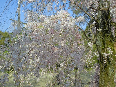 晴れ模様が続き紅しだれ桜が本日、満開を迎えました。