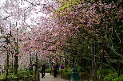 さて、神苑の桜ですが、八重紅枝垂桜に替わり遅咲きの里桜が見頃を迎えています。