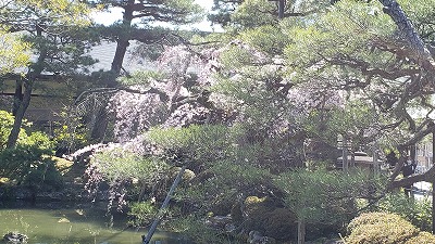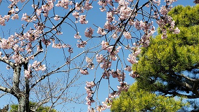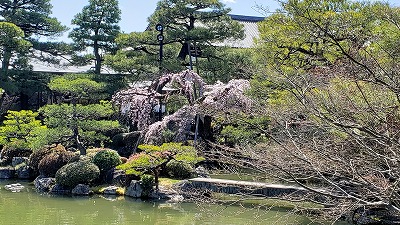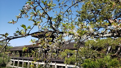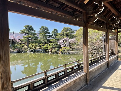 東神苑の橋殿のから枝垂桜も綺麗にご覧いただけます。