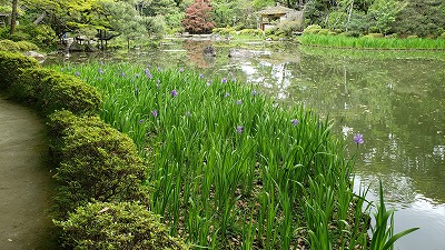 ただいま中神苑の杜若(かきつばた)が咲いております。桜同様、暖かさもあり例年より