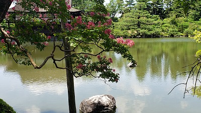 神苑はただいま百日紅(サルスベリ)と睡蓮(スイレン)が見頃ですね。