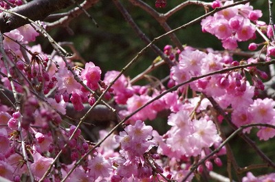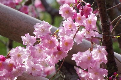 八重紅枝垂は昨日開花したばかりですが、昨日の暖かさで一気に蕾が開きはじめました。