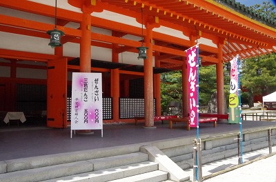 また境内、応天門から入ってすぐ左手の額殿では平安神宮婦人会の皆様のご奉仕のもと、ぜんざいと三色だんごで一息ついていただける喫茶コーナーがございます。
