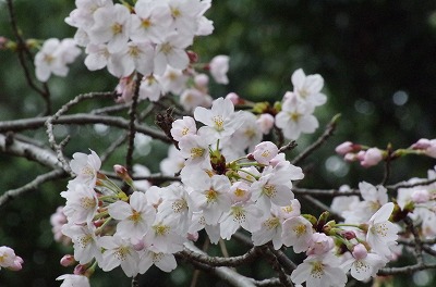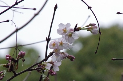 染井吉野、八重紅枝垂も昨年よりも遅れています。