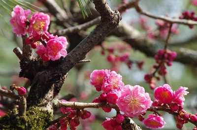 ただいま神苑で見頃を迎えているのは梅・桃・馬酔木です。