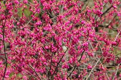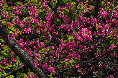 花はそれほど開きませんが、空を覆いつくすほどの鮮やかな濃赤紫は見応え充分です。
