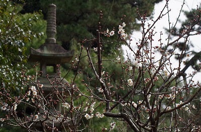神苑では先日開花した梅が少しずつ花の数を増やしていますが、見頃になるにはまだ時間がかかりそうです。