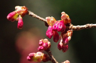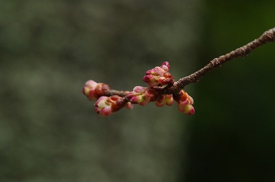 ちなみに早咲きの赤実大島桜・寒緋桜の今日の様子は「蕾膨らむ」といったところです。
