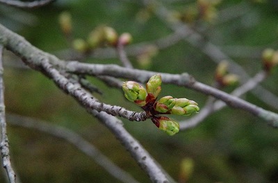 また、八重紅枝垂桜や染井吉野などその他の桜はまだ固い蕾の状態です。