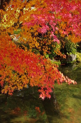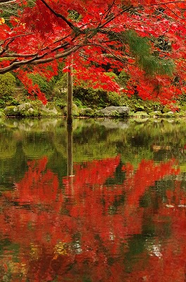 ここは白虎池を取り囲むかたちでところどころに紅葉が植えられていますが、オススメは2枚目の画像の下部に見える石橋を渡られてすぐ右にある階段下からの眺めです。