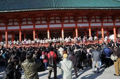 平安神宮でも、平安朝に宮中で行われていた追儺の儀(ついなのぎ)を古式に則り再現した「大儺の儀(だいなのぎ)」や、豆撒き、そして大火焚神事などが執り行われます。