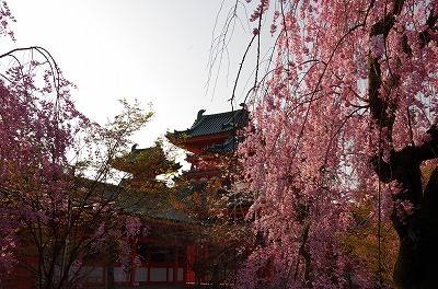 入口を抜けるとまず目に飛び込んでくるのが文豪谷崎潤一郎の『細雪』・川端康成の『古都』にも登場する八重紅枝垂桜です。