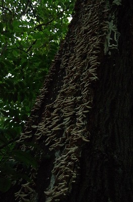 さて、南神苑の一角にある楠にニホンミツバチが巣を作っていました。