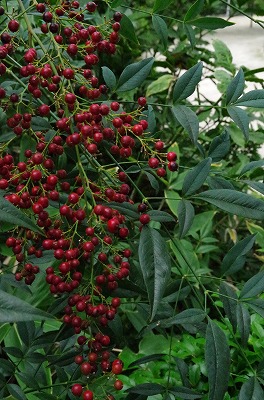 南天の実も赤く色づきました。