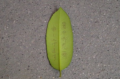 裏側を傷つけると黒く変色するため、紙が貴重だった時代にはこの葉の裏に木の枝などで文字を刻み、現在の葉書のような物として使っていました。