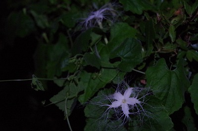 残念ながら夜間にしか咲かない花なので皆様にご覧いただくことはかないませんが、もしお近くにカラスウリの蔓がありましたらぜひ一度ご覧になってみてください。