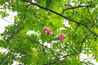 夏を代表する花のひとつである百日紅、葉の濃い緑と花の鮮やかな赤が目を引きます。