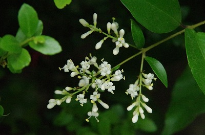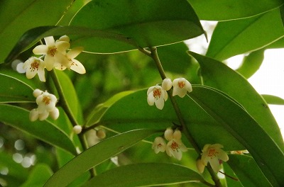 神前にお供えする榊の木にも花が咲いています。