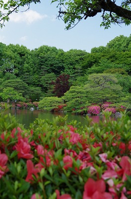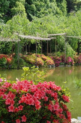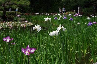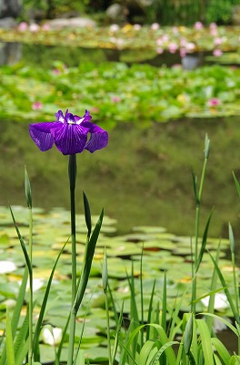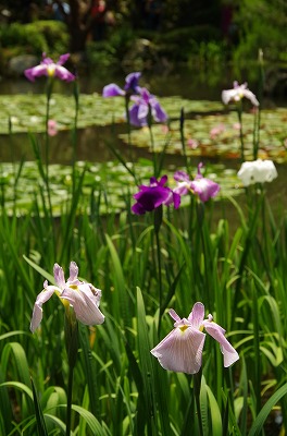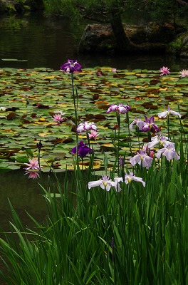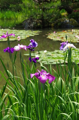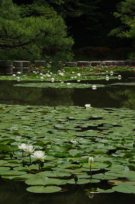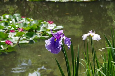 西神苑の白虎池と中神苑の蒼龍池では花菖蒲、サツキの他に河骨、そして睡蓮が見頃を迎えています。