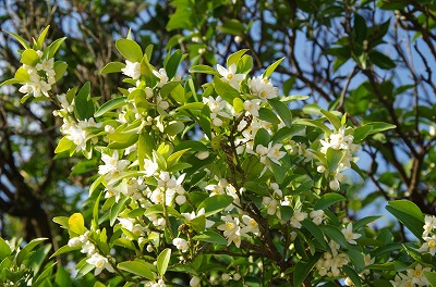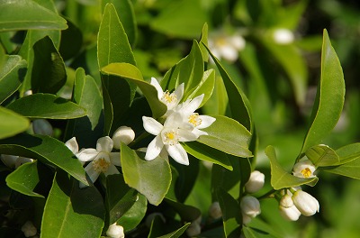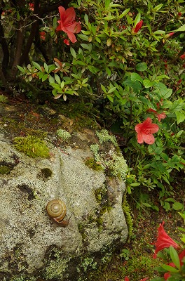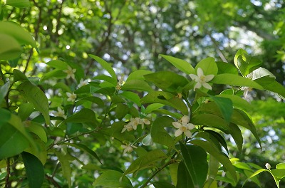 その他には、橘の花が開き始めて辺りを甘く香しい香りで包んでいますし、萌える緑の中にはテイカカズラやセキチクなどの花々が顔を覗かせています。