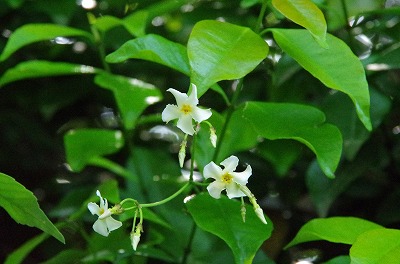 こちらはテイカカズラ。花びらが扇風機の羽根のようで、今にも回転しそうですね。
