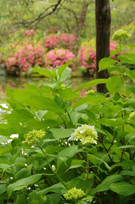 サツキに混じって、紫陽花の花も咲き始めていました。