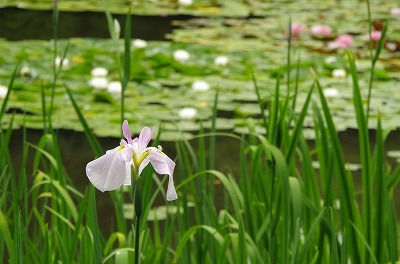 この八ツ橋からですと、このように真上より花菖蒲をご覧いただけます。