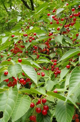 また、大島桜の木は赤い実でいっぱいです。