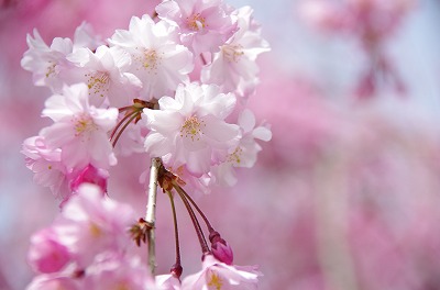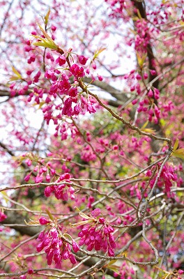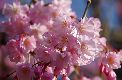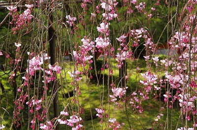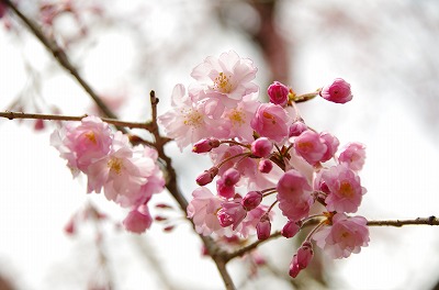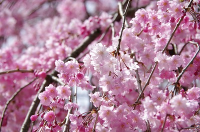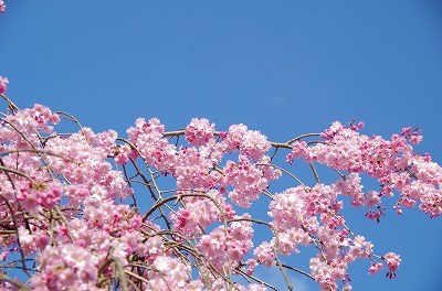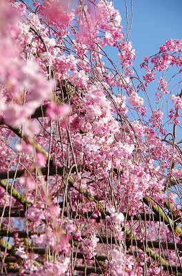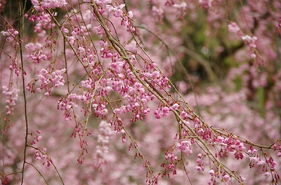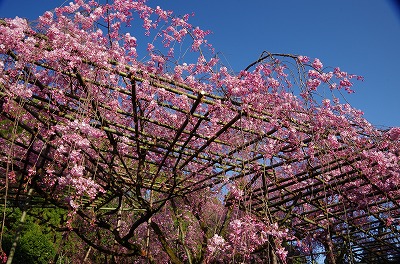 八重紅枝垂桜は5分咲ですが、それでも充分お楽しみいただけるのではないかと思います。また、その他の桜もたくさんの花をつけて皆様をお待ちしております。