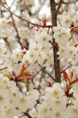 山桜ですので、花と共に新芽が出ます。木全体が赤みを帯びて他の桜とは違った雰囲気を醸しています。