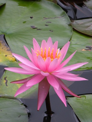神苑では赤紫、白、黄、桃色の睡蓮と黄色い河骨が池を彩っています。