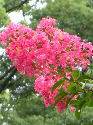 情熱的で鮮やかな濃桃色の花を枝いっぱいに咲かせている百日紅を見ると、なんだか元気をもらえます。