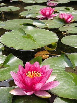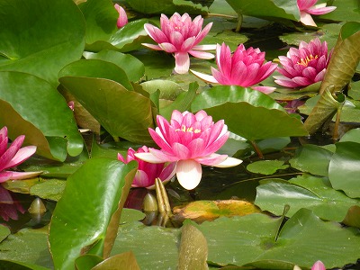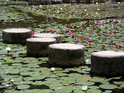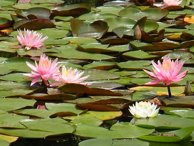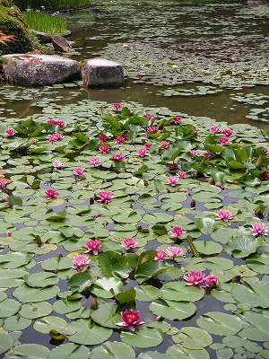 続いて西神苑では白虎池から美しい顔を出している睡蓮がまず目に入ります。