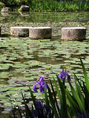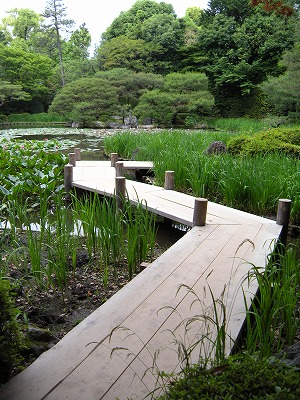 そして開花よりも一足早く八ツ橋が架けられ、花菖蒲や睡蓮、河骨などを真上からもご覧いただけるようになりました。