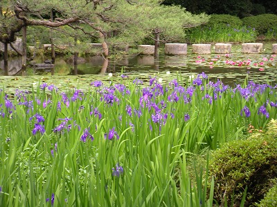 南神苑、平安の苑ではアヤメが花を咲かせました。