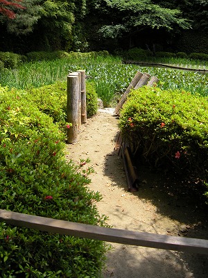 花菖蒲の開花期間だけ設置される八ツ橋の準備も始まりました。