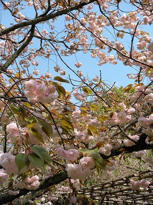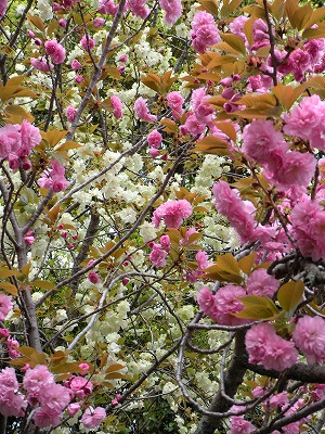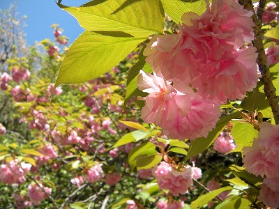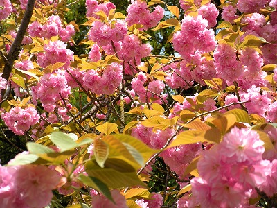 そして、若葉がだいぶ目立ってきたものの里桜が満開です。