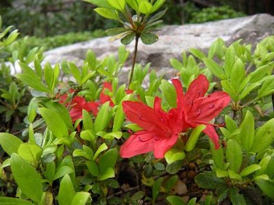八重紅枝垂 【散り初む】 里桜(普賢象・菊桜など) 【三分】 ヤマツツジ ツボスミレ