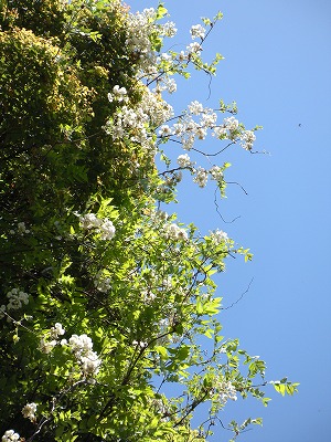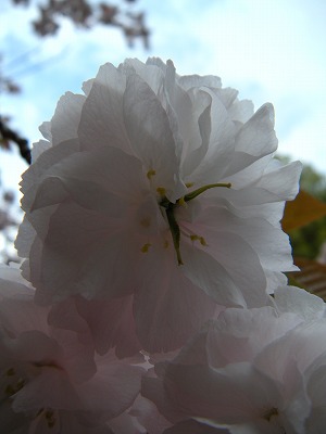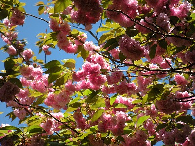 そして紅枝垂に替わって里桜が次々と花をつけ始めました。八重の大輪は紅枝垂とは全然違った印象で、こちらも強く目を惹かれてしまいます。