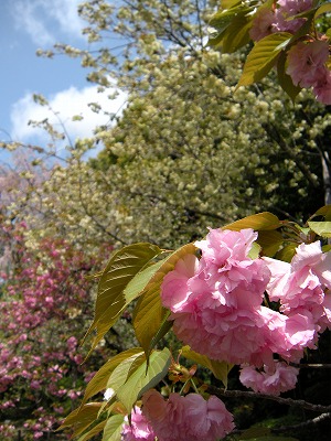 里桜(関山・鬱金など) 【三分咲き】 大山桜 【満開】 大島桜【散り初む】 山吹