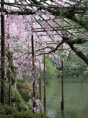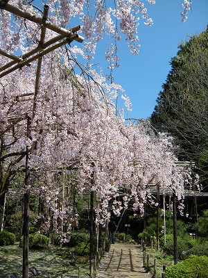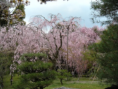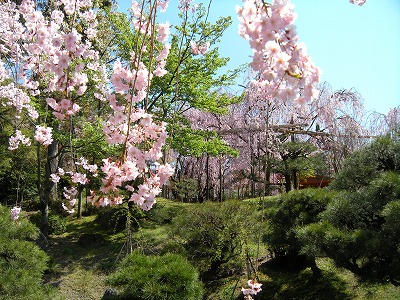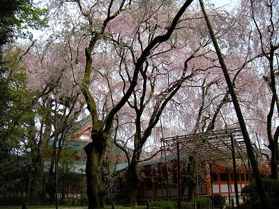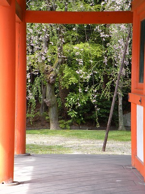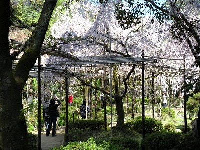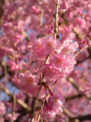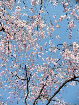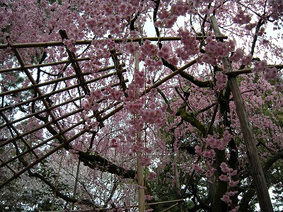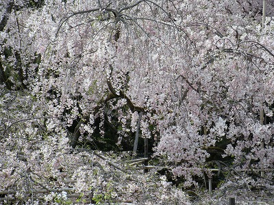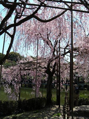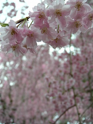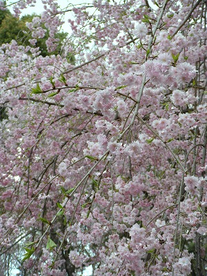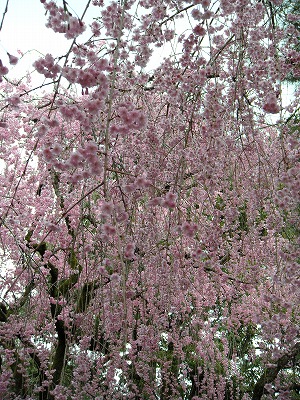 八重紅枝垂桜は色こそやや落ちてきましたが依然満開です。
