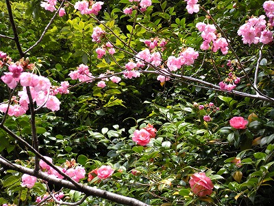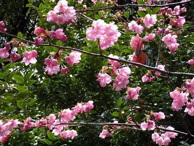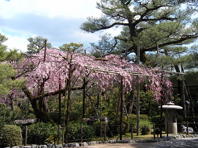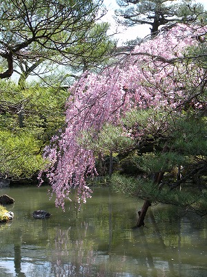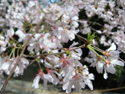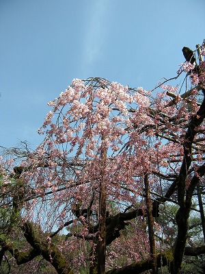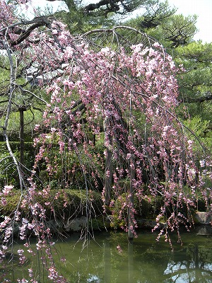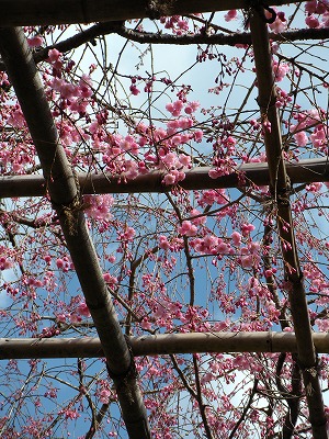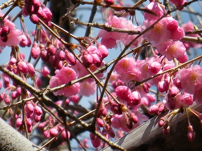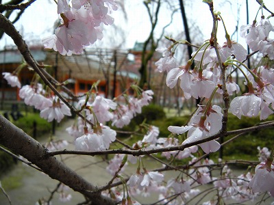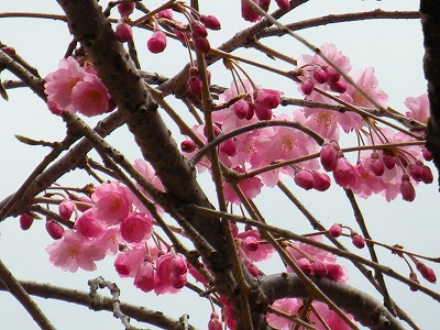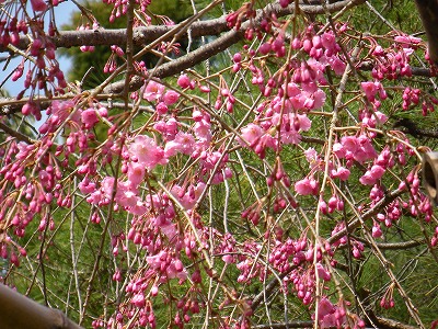 昨年より2日遅れましたが、本日午前、南神苑の八重紅枝垂桜が開花しました。