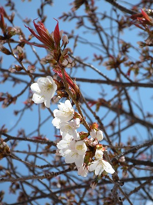染井吉野はちらほら咲き、里桜はまだ蕾です。