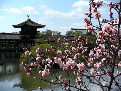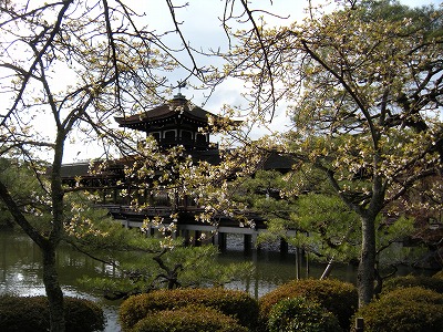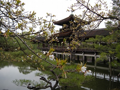 平安神宮神苑は南・西・中・東、と4つの区域に分けられています。皆様に最後にご覧いただく東神苑の入口で、寒緋桜は濃い紅色の花を咲かせてお出迎えをいたします。