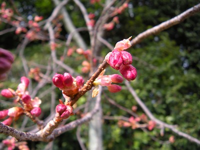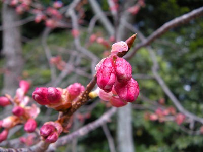 早咲きの赤実大島桜は去年の三月十五日にはすでに開花していました。ちなみに昨年は十三日に開花しました。