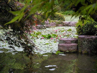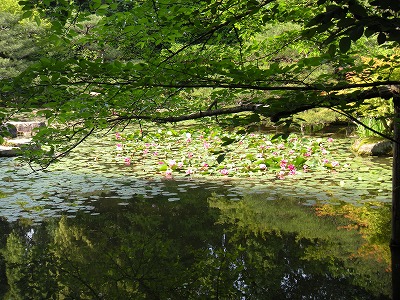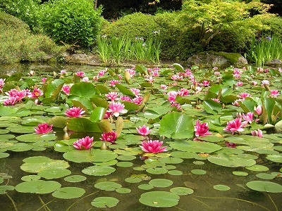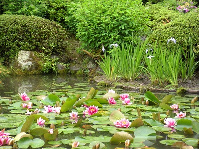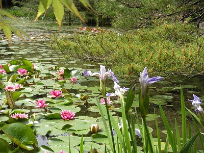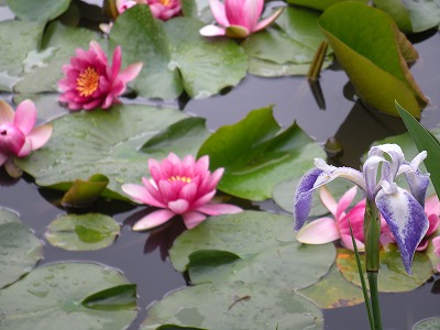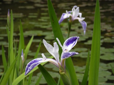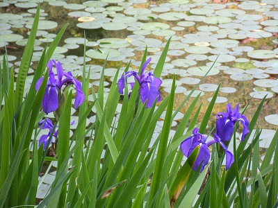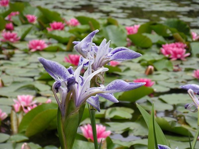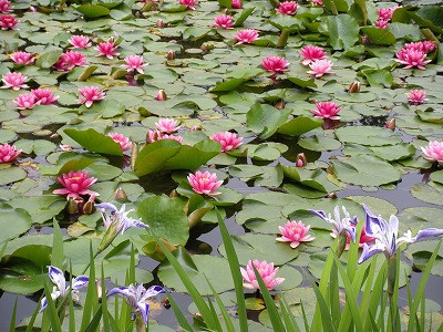 本日の睡蓮と杜若の様子です(中神苑蒼龍池)。