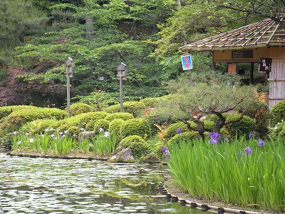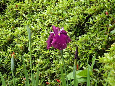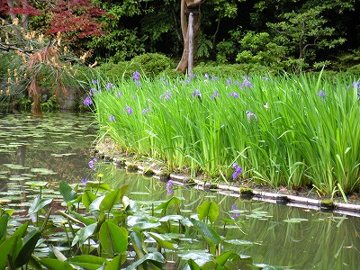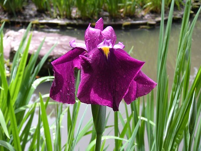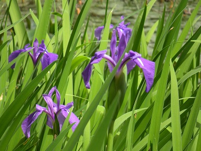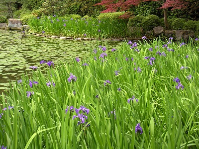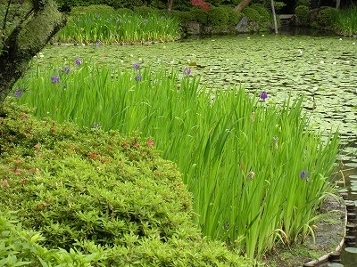 中神苑蒼龍池の杜若の多くは1番花から2番花へと移り咲いています。