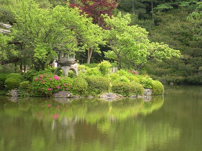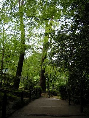激しく降り続いた雨はあがりましたが快晴とはいかず、今日の京都にはたくさんの黄砂が舞い降り、神苑が借景としている東山の嶺々もかなり霞んで見える状態でした。