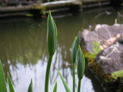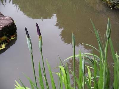 西神苑白虎池の花菖蒲はまだ蕾です。
